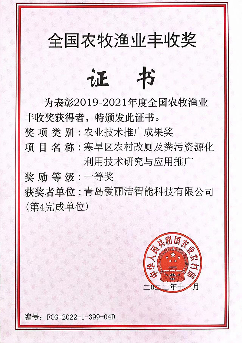 青島愛麗潔智能科技有限公司成立于2015年7月,注冊(cè)資金2000萬,是一家專注于提供農(nóng)村廁所解決方案、產(chǎn)品研發(fā)、生產(chǎn)和銷售于一體的企業(yè),已通過質(zhì)量管理體系認(rèn)證,先后被評(píng)為國(guó)家級(jí)“高新技術(shù)”企業(yè)、“專精特新”示范企業(yè)、榮獲德國(guó)當(dāng)代好設(shè)計(jì)優(yōu)勝獎(jiǎng)等諸多榮譽(yù),公司擁有碩士、博士組成的專家研發(fā)團(tuán)隊(duì),獲得國(guó)家知識(shí)產(chǎn)權(quán)局頒發(fā)的五十多項(xiàng)專利。我公司早在于2017年開始同“農(nóng)業(yè)農(nóng)村部規(guī)劃設(shè)計(jì)研究院”進(jìn)行密切合作,共同研發(fā)出適合我國(guó)“農(nóng)村廁所改造”和“糞污資源化利用”的專利產(chǎn)品,有效的解決了農(nóng)村廁所問題。